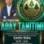 Çetin Kılıç, 12 Mart Perşembe akşamı Esenyurt Onurcan Düğün salonu 6’da GÖLE-FED Delegelerini iftar yemeğinde ağırlayacak
