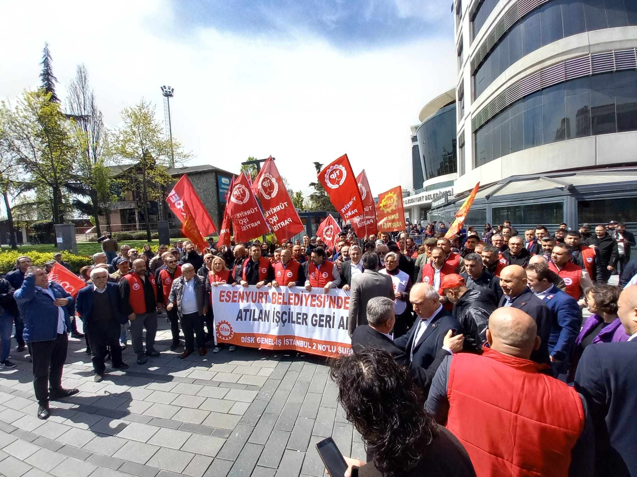 Esenyurt Belediyesi kayyum olarak atan yeni yönetim, Kod-4 gerekçe gösterilerek çok sayıda işçiyi işten attığı belirtiliyor. İşine son verilen işçiler taleplerini dile getirmek için 14 Nisan Pazartesi saat 12.30’da Esenyurt Belediyesi önünde bir araya geldi. İşçiler, sendikalarıyla birlikte basın açıklaması yaparak yaşananları protesto etti. Genel-İş Sendikası 2 No’lu Bölge Temsilcisi Süreyya Doğan, belediye önünde yaptığı açıklamada, “Bu haksızlığı ve hukuksuzluğu kabul etmiyoruz,” diyerek direnişin süreceğini vurguladı.