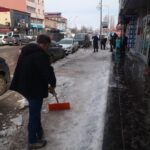 Son zamanların en zor kışlarını yaşayan Göle ilçe merkezi Mart ayının gülen güneşiyle karların erimesi sonucu halkın yaşamını kolaylaştırmak amacıyla Göle Belediye Başkanı Gökhan Budak’ın talimatıyla buzların iş makineleriyle kırılmasına tanıklık ederken kuzey bölgesinde kalan cadde ve sokakların buz tutan kaldırımlarını Göle esnafı dayanışma içinde kazma- kürek ve baltalarla buzları kırarak belediyenin çalışmalarına destek verdi.